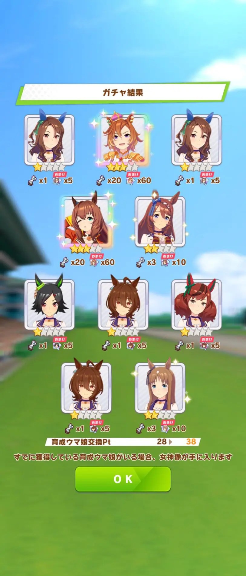 ガチャ産星3ウマ娘が11/45体しかいないのに無料ガチャ虹2枠ともすり抜け被りで辛い