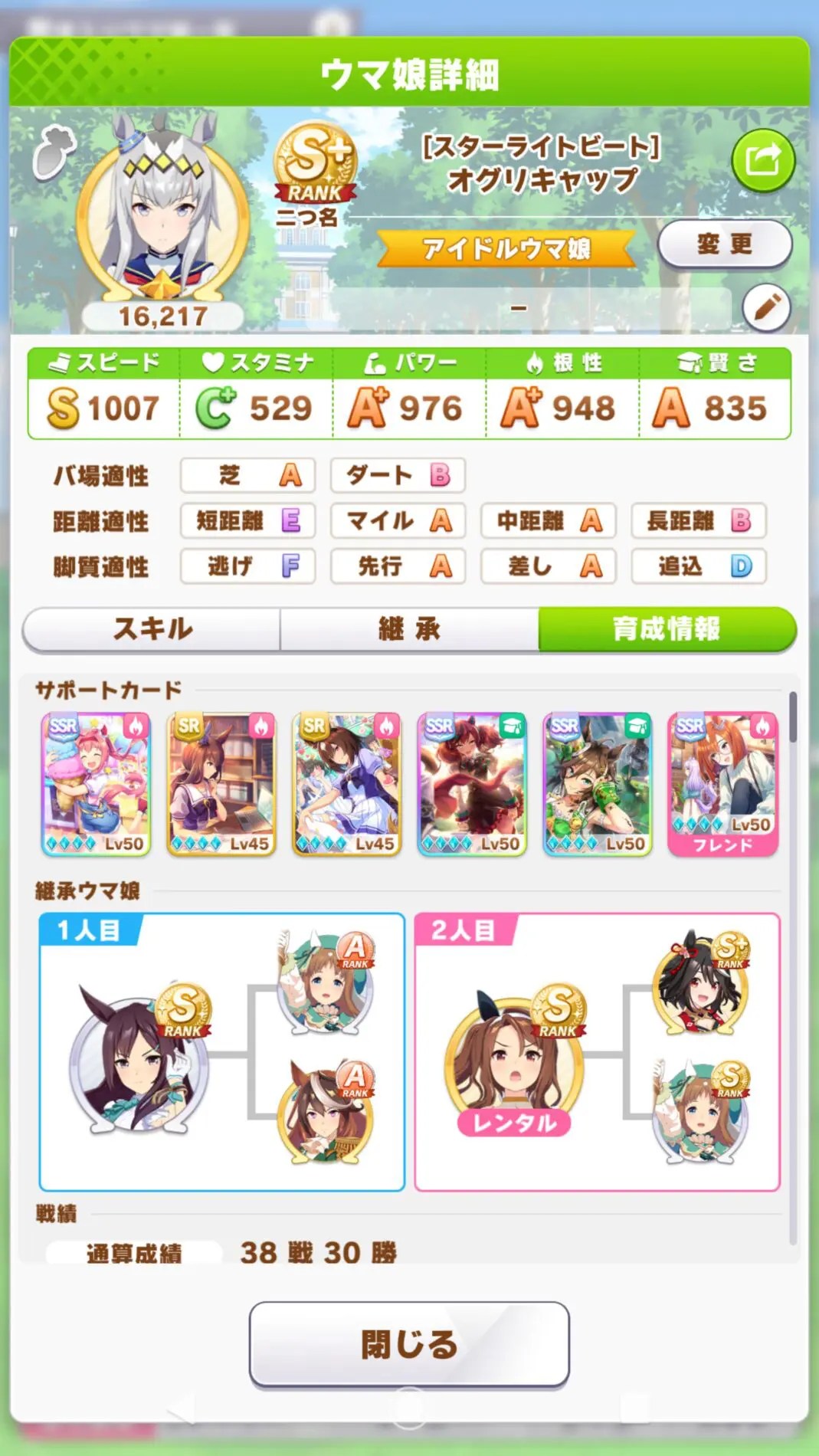 なんか似たような二か月前のオグリを思い出した今の俺ならウララの替わりにスピ1枚入れるかなあ・・・