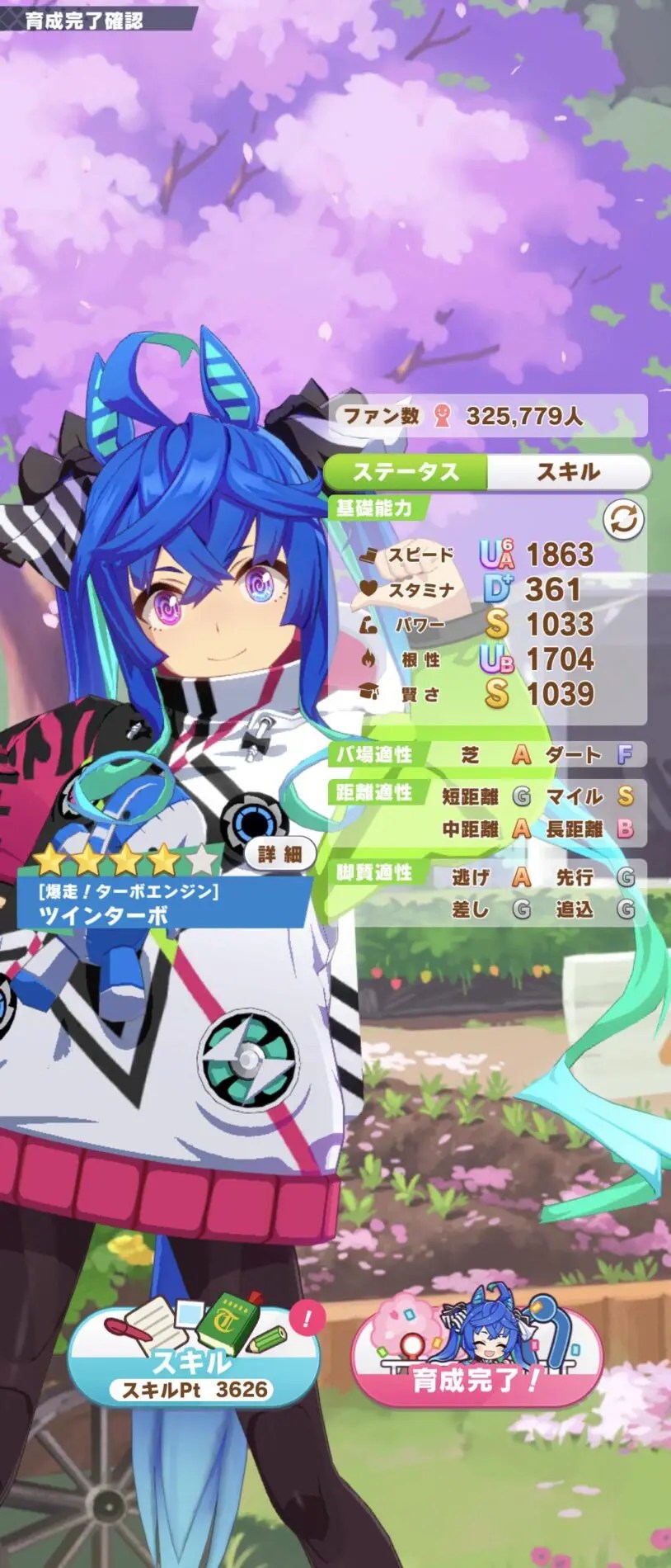 パワと根性あわせて3000行く場合はスピ1750くらいになったりするわ